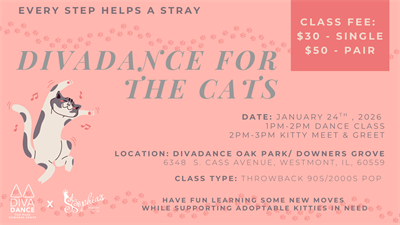 Join St. Sophia’s Forgotten Felines for a high-energy, feel-good fundraiser benefiting cats in need! This special event features a throwback 90s/2000s pop choreography class led by DivaDance, followed by a meet-and-greet with adorable, adoptable cats.